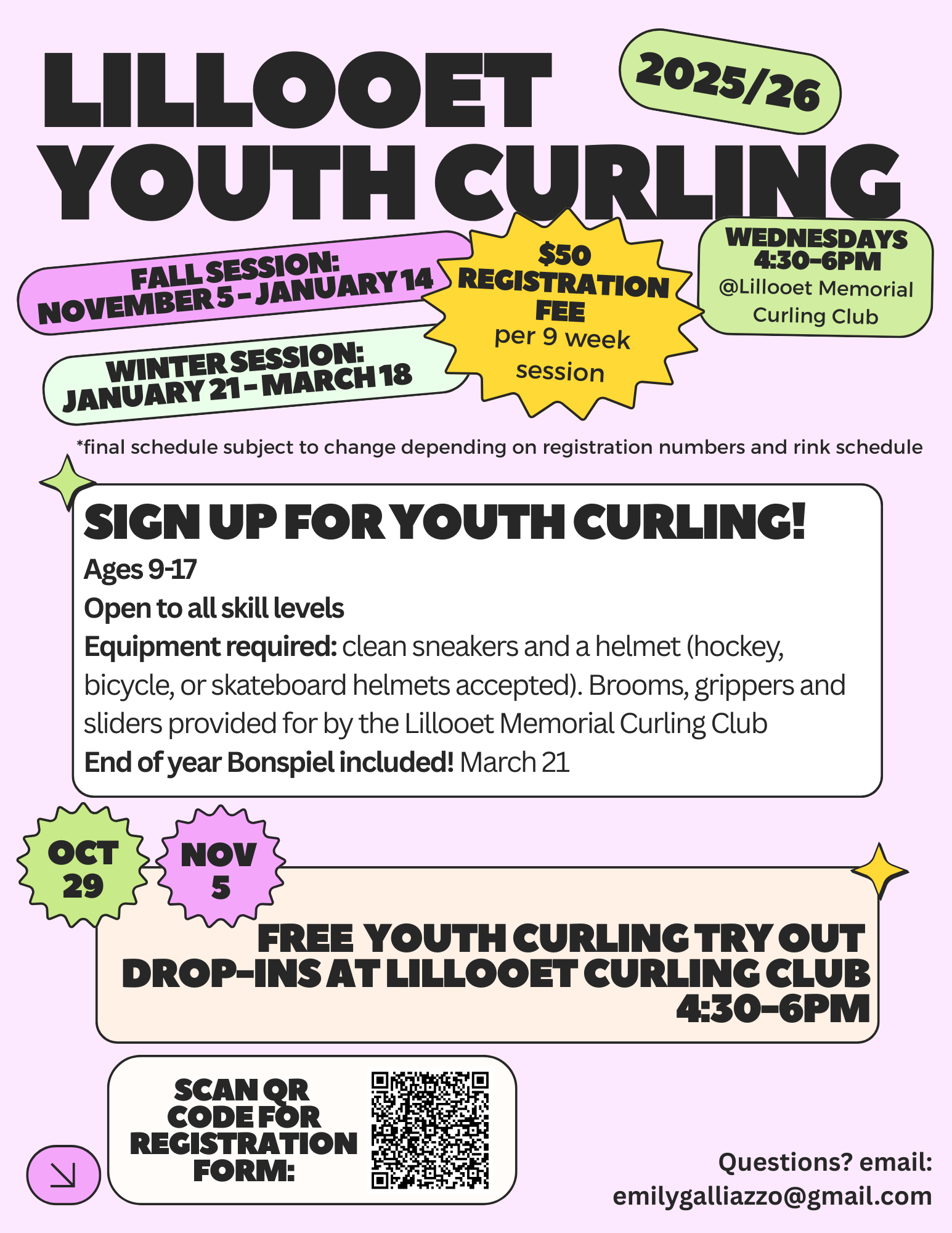 Lillooet Youth Curling! Ages 9-17. Register now!
